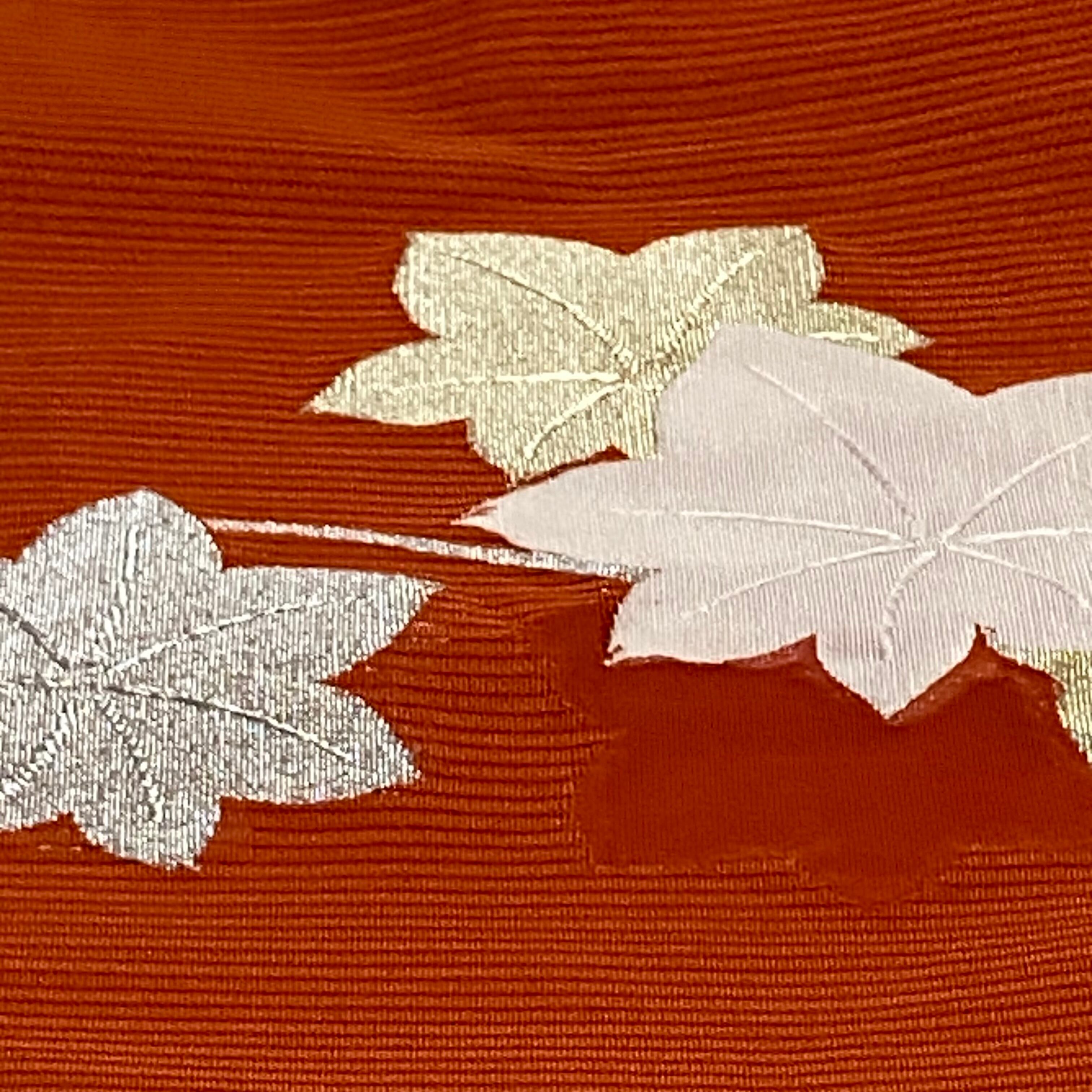ベージュや生成りの夏着物に。同系色でまとめて、銀糸の楓を主役にした涼しげな装い♪