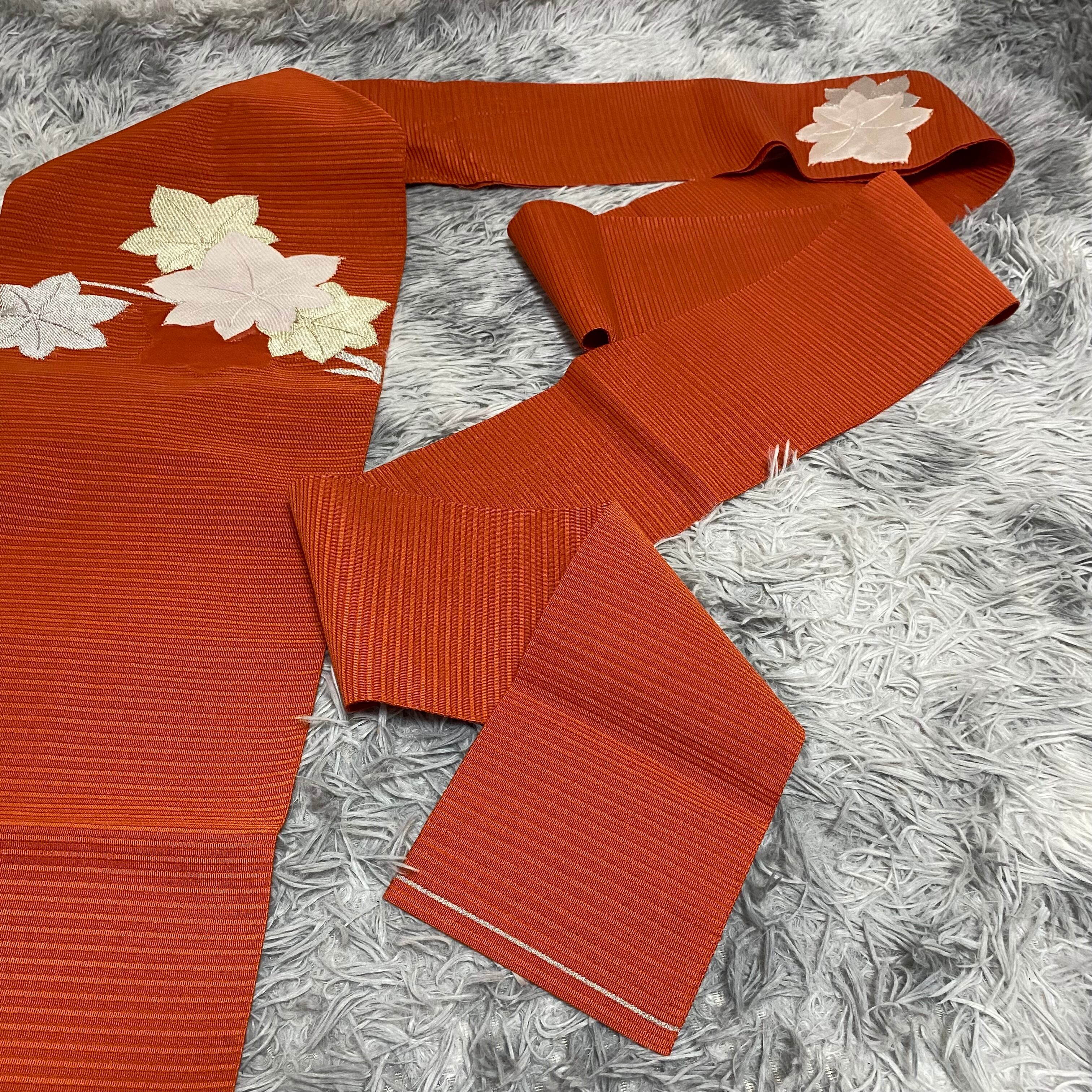 美品 希少【夏帯 絽】八寸名古屋帯 名古屋仕立て 楓 紅葉 赤銅色 昭和レトロ