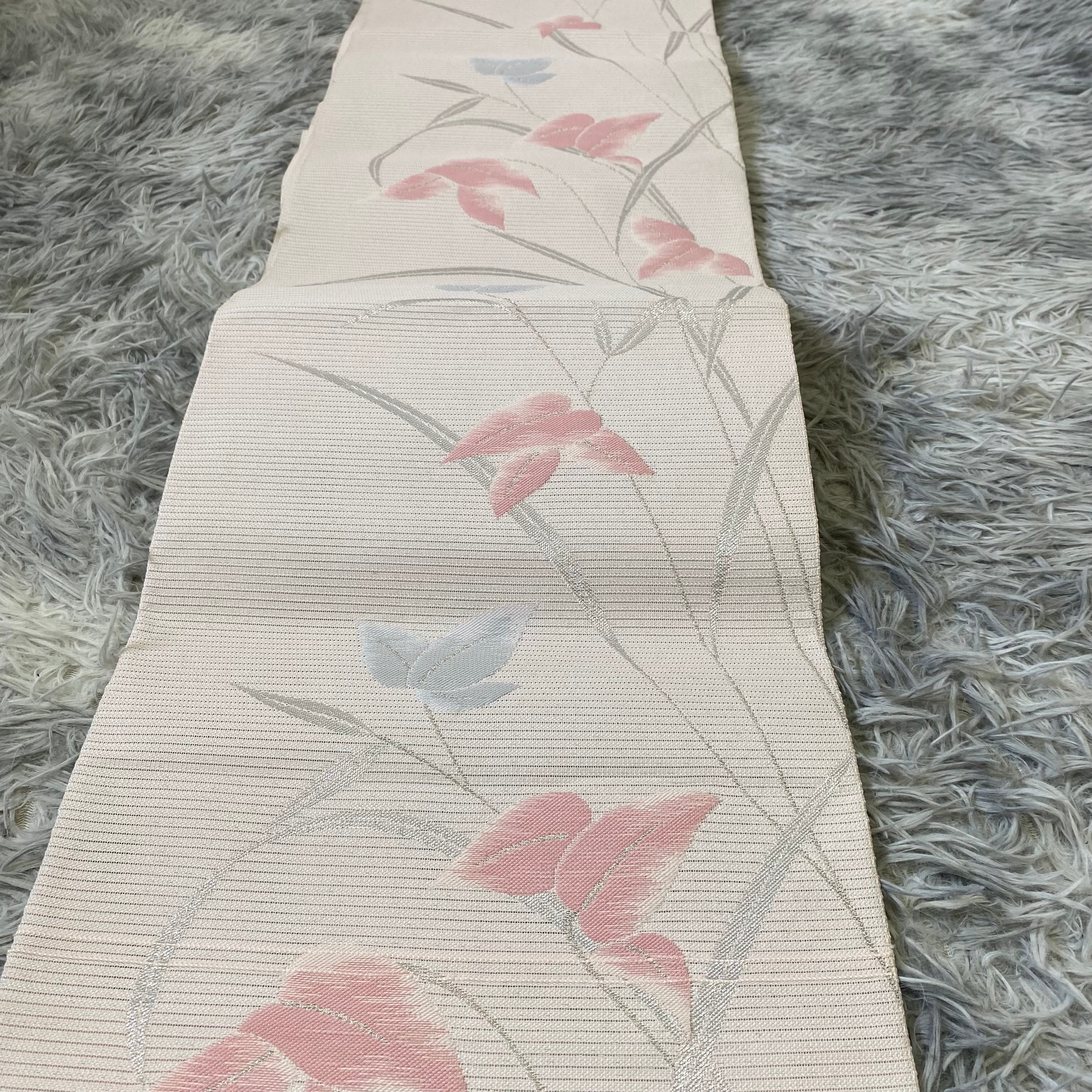 ✿ 涼しげな絽の夏帯♡淡いピンクに、上品な織り柄とシルバーが輝きます✨️