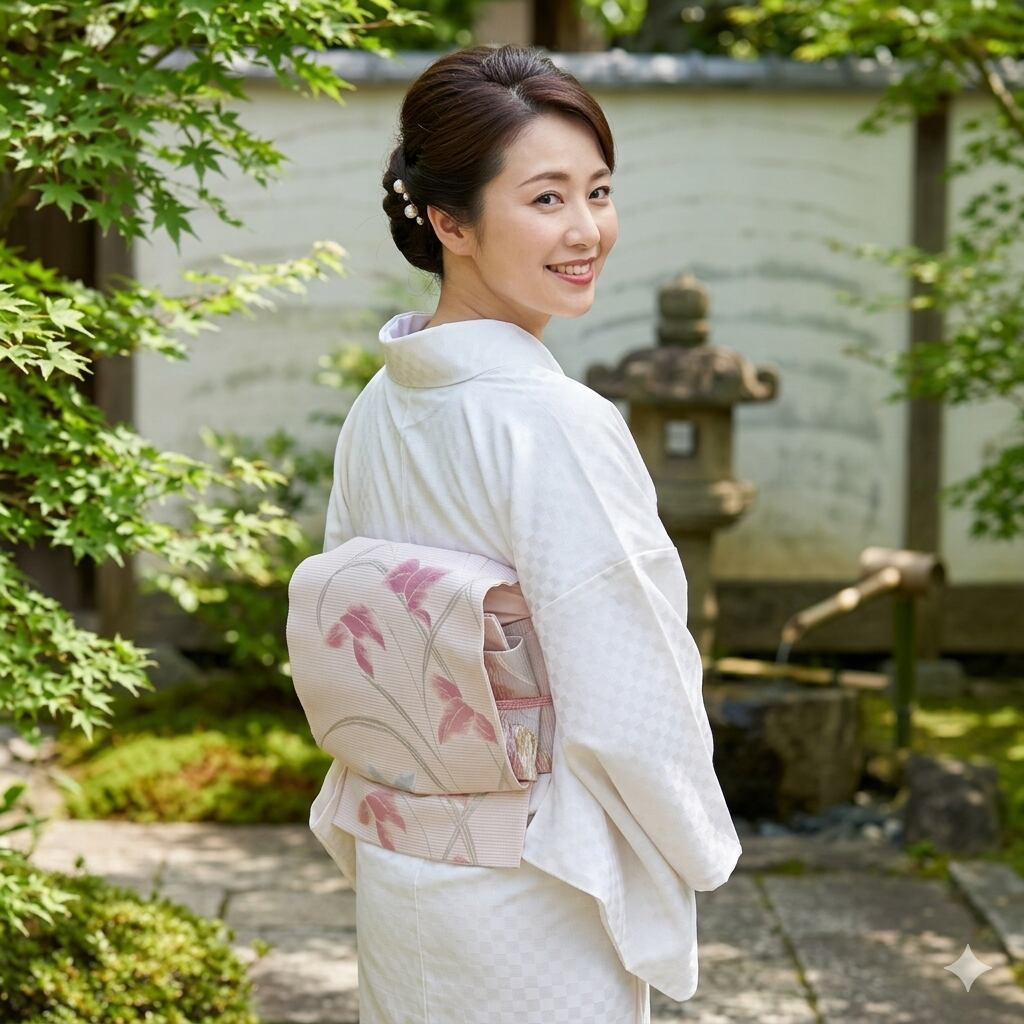 • 上品コーデ:白・クリーム地の小紋。透明感が出て、最も涼しげに見えます♪