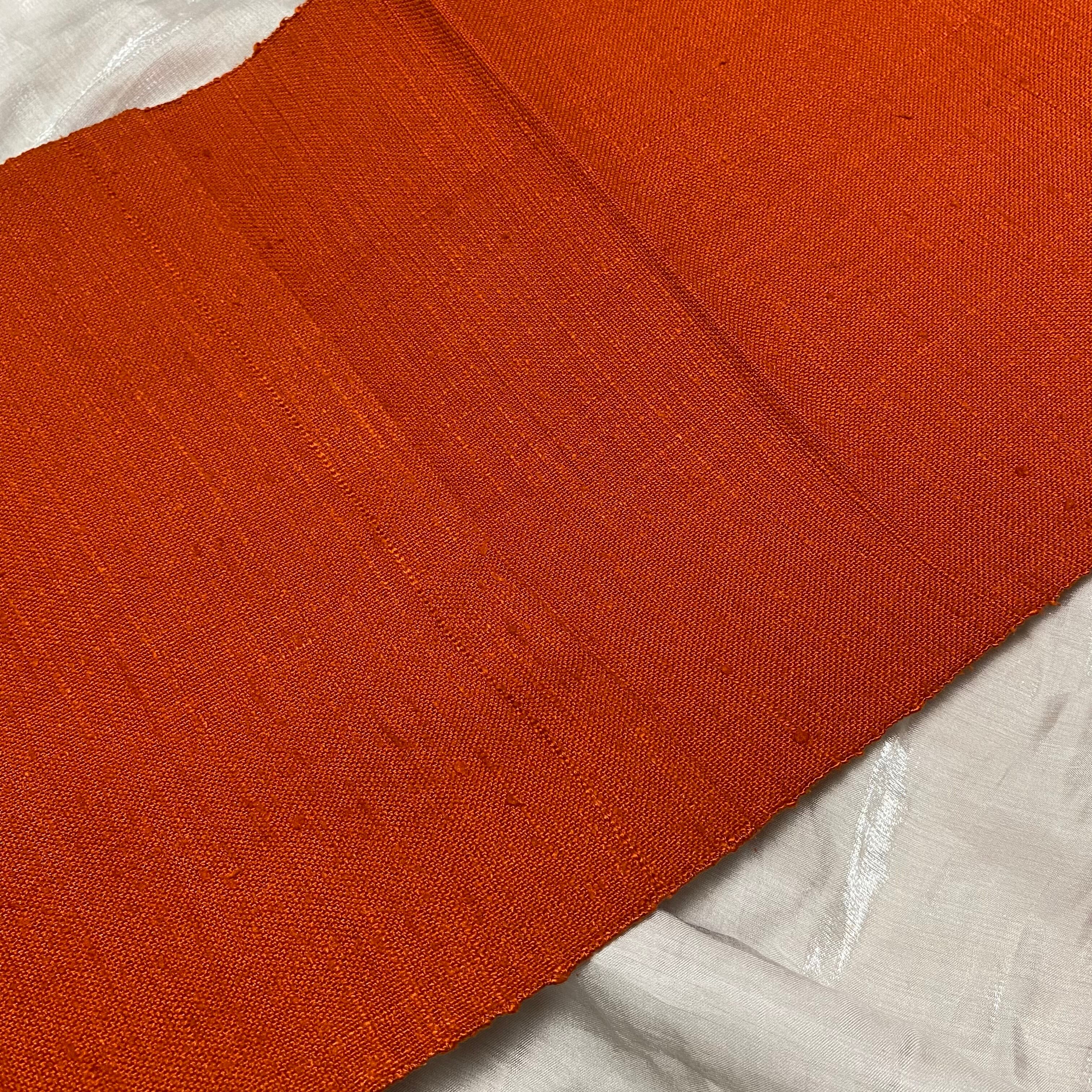 【昭和レトロ×モダン】視線を集める鮮やかな橙色の紬の帯です。